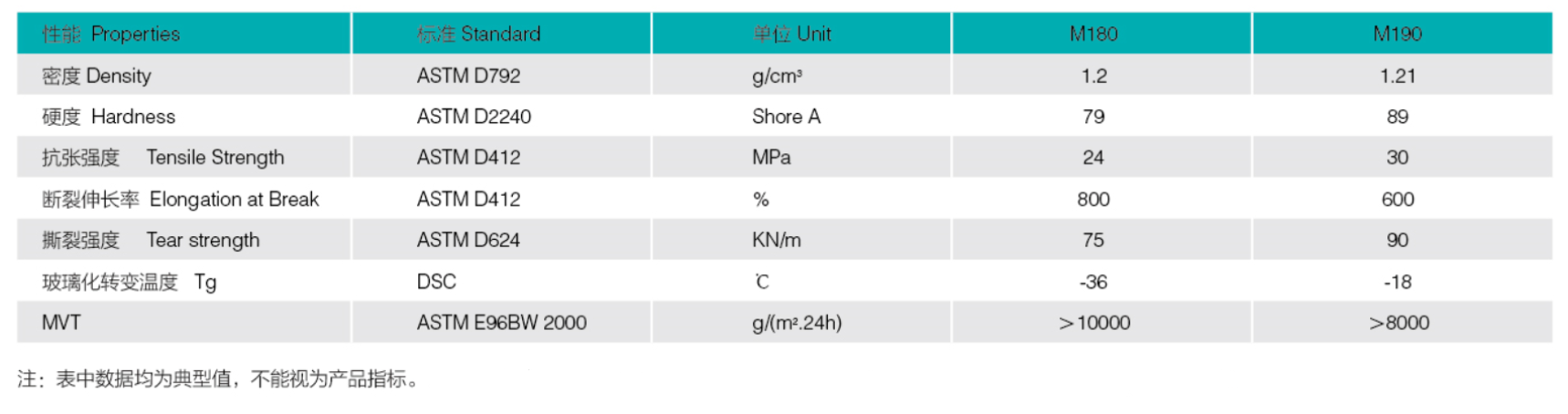 聚醚TPU 型號列表