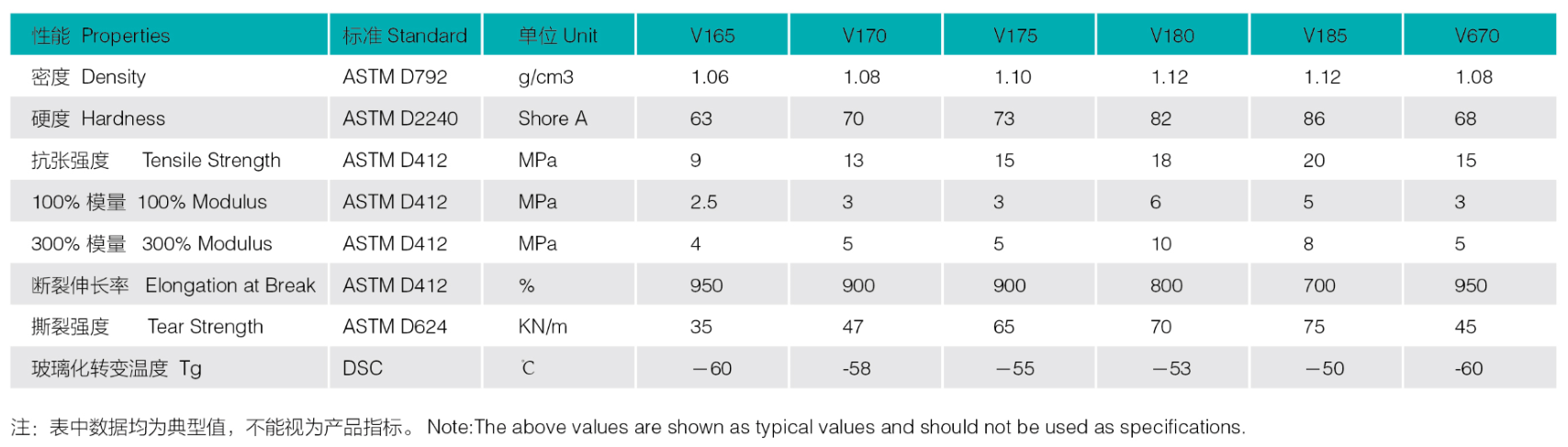 TPSiU彈性體 型號(hào)列(liè)表+